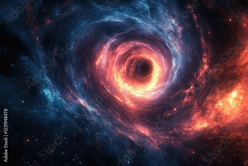 The watermark will not be included on Wall mural.: Abstract representation of a wormhole warping space, creating a tunnel of swirling, luminous energy -