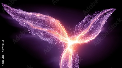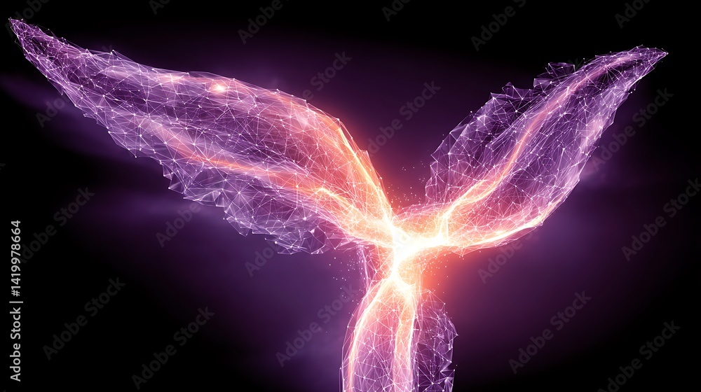 The watermark will not be included on Wall mural.: Abstract representation of angelic wings with digital network connection and luminous glow -