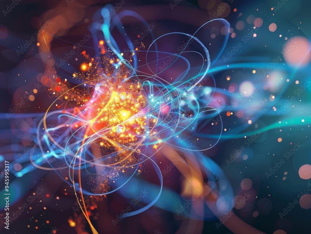 Wall mural abstract representation of atomic structure with dynamic particle interaction and energy flow - Wall murals Wall mural abstract representation of atomic structure with dynamic particle interaction and energy flow - Wall murals