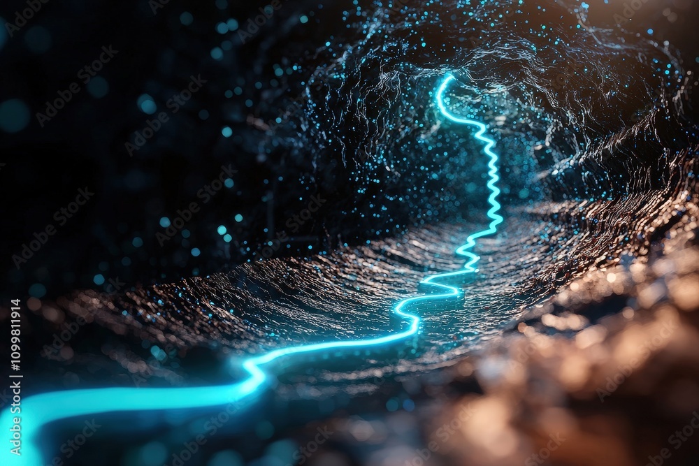 Wall mural abstract representation of blue light flowing through a dark tunnel, creating a sense of depth and m - Wall murals Wall mural abstract representation of blue light flowing through a dark tunnel, creating a sense of depth and m - Wall murals
