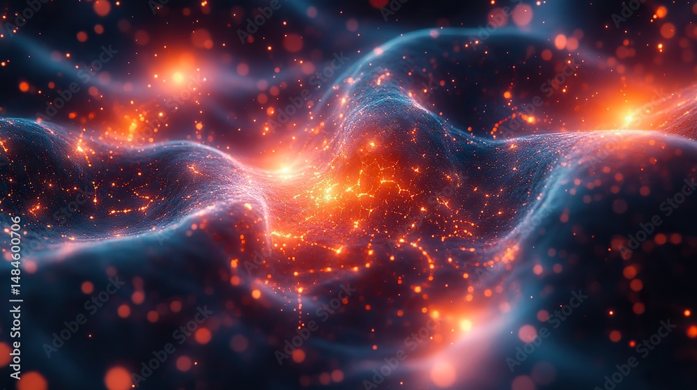 The watermark will not be included on Wall mural.: Abstract representation of connection visualized as glowing threads weaving together to form a compl