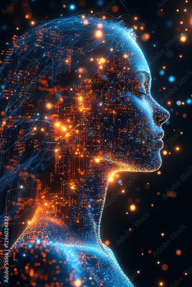 Wall mural : Abstract representation of digital human profile with futuristic design and technology