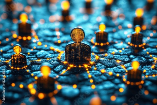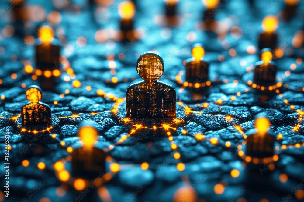 Wall mural abstract representation of digital networking and connectivity with glowing connections and silhouet - Wall murals Wall mural abstract representation of digital networking and connectivity with glowing connections and silhouet - Wall murals