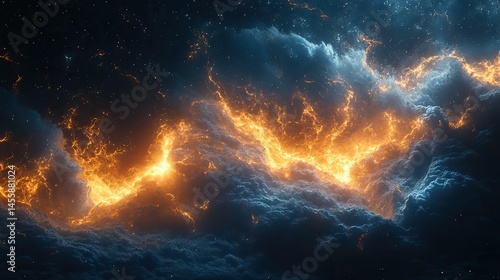The watermark will not be included on Wall mural.: Abstract representation of energy visualized as crackling bolts of lightning and swirling currents o