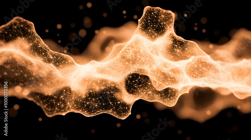 The watermark will not be included on Wall mural.: Abstract representation of glowing particles flowing in a dynamic wave against a dark background