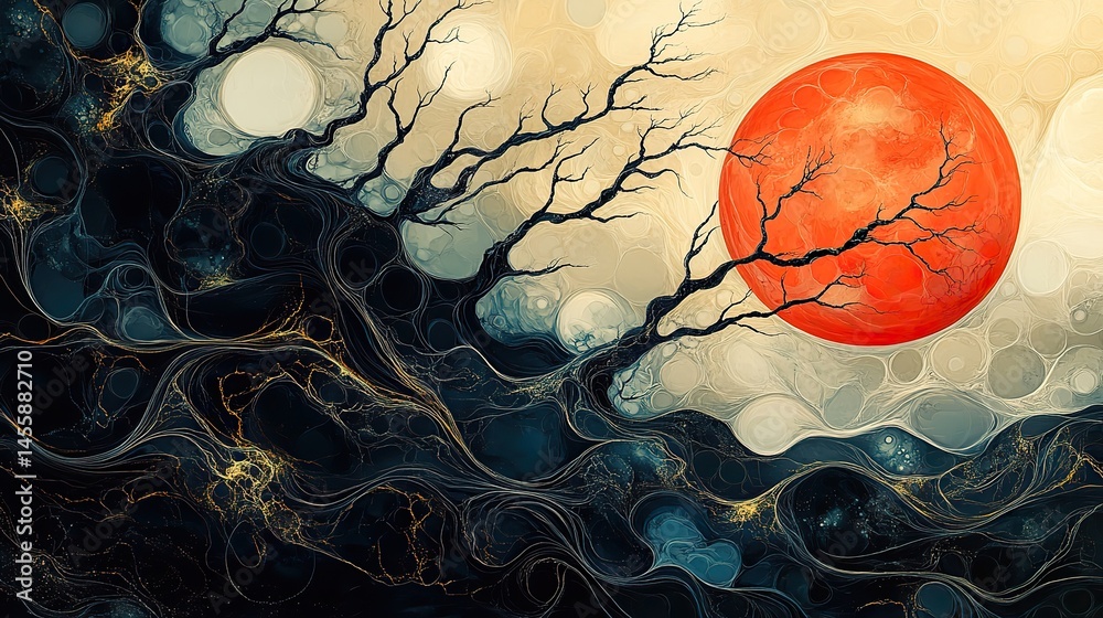 Wall mural abstract representation of growth and interconnectedness through branching lines and organic shapes. - Wall murals Wall mural abstract representation of growth and interconnectedness through branching lines and organic shapes. - Wall murals