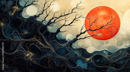 The watermark will not be included on Wall mural.: Abstract representation of growth and interconnectedness through branching lines and organic shapes -