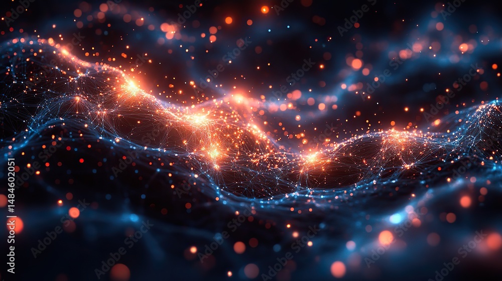 The watermark will not be included on Wall mural.: Abstract representation of interconnectedness through a network of glowing lines and nodes, illustra
