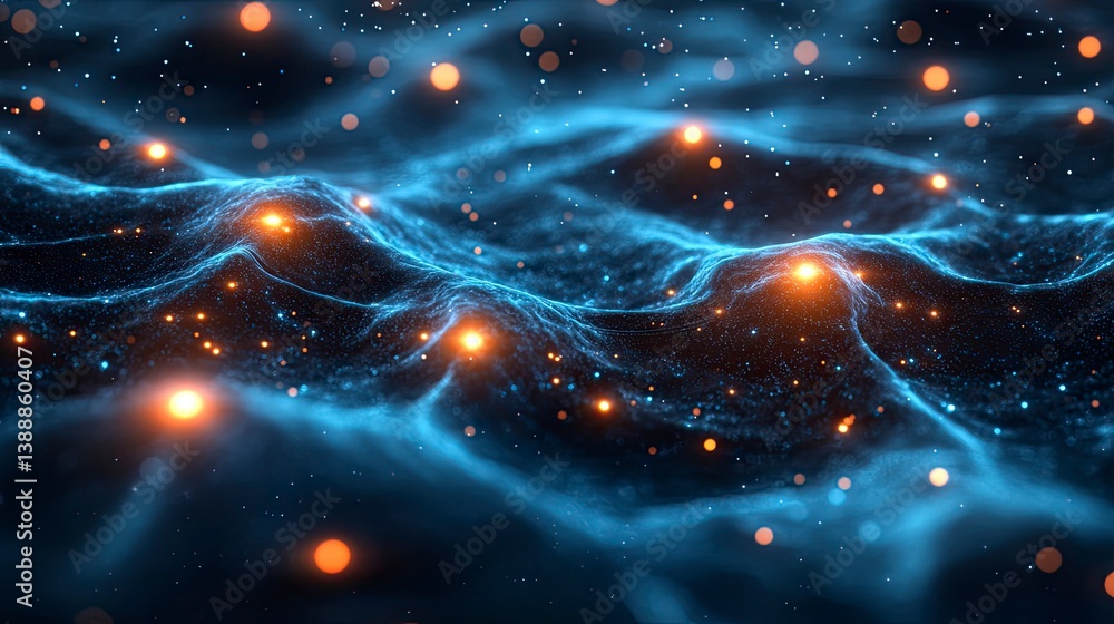 The watermark will not be included on Wall mural.: Abstract representation of neural networks with glowing nodes and connections against a deep space b