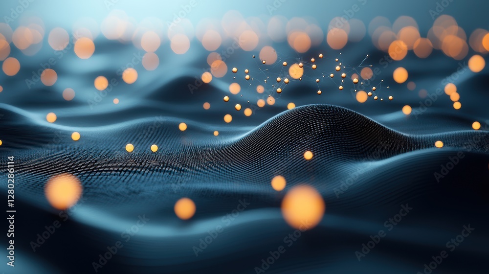 Wall mural : Abstract representation of quantum computing with glowing qubits and entangled particles, visualizin