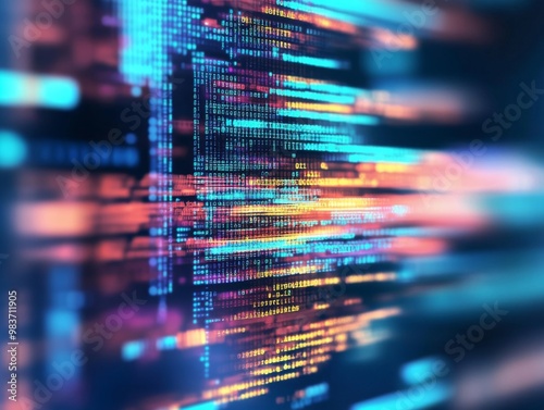 Wall mural abstract representation of software development with blurred computer code and screens, highlighting - Wall murals Wall mural abstract representation of software development with blurred computer code and screens, highlighting - Wall murals