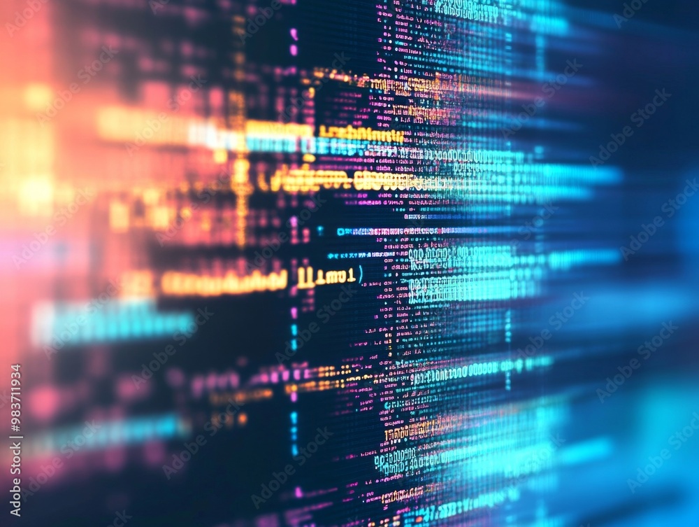 Wall mural abstract representation of software development with blurred computer code and screens, highlighting - Wall murals Wall mural abstract representation of software development with blurred computer code and screens, highlighting - Wall murals