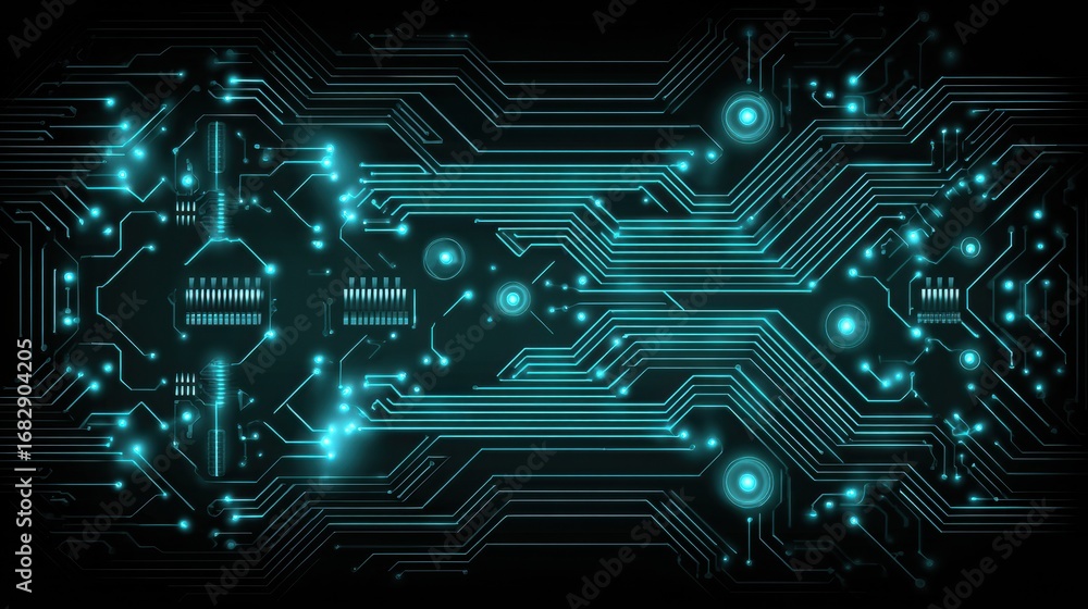 The watermark will not be included on Wall mural.: Abstract representation of technology with glowing circuit board patterns and digital connections in
