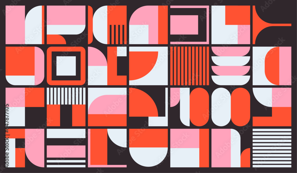 Wall mural abstract retro geometric background with vector modern minimal shapes, geometric pattern with square