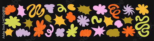 Wall mural abstract retro shapes and funky groovy forms. vector geometric stickers with different elements