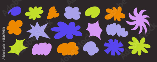 Wall mural abstract retro shapes and funky groovy forms. vector geometric stickers with different elements in c