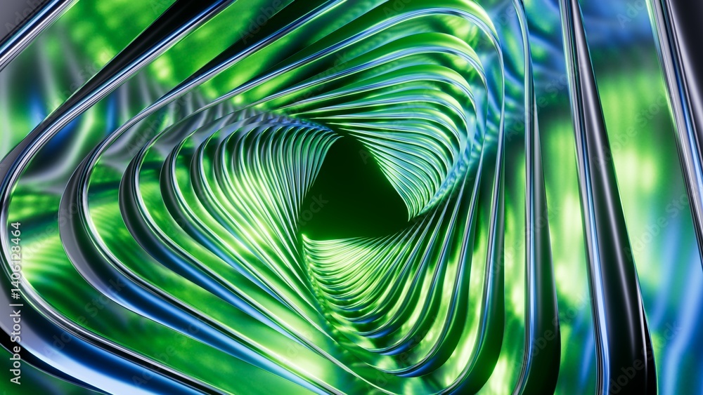 Wall mural abstract ribbed green glass background. tunnel with a rounded triangular hole at the end. 3d render - Wall murals Wall mural abstract ribbed green glass background. tunnel with a rounded triangular hole at the end. 3d render - Wall murals