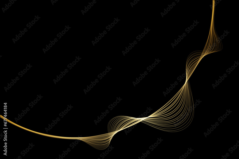The watermark will not be included on Wall mural.: Abstract round curve by lines wavy flowing gold gradient isolated on black background - vector in con
