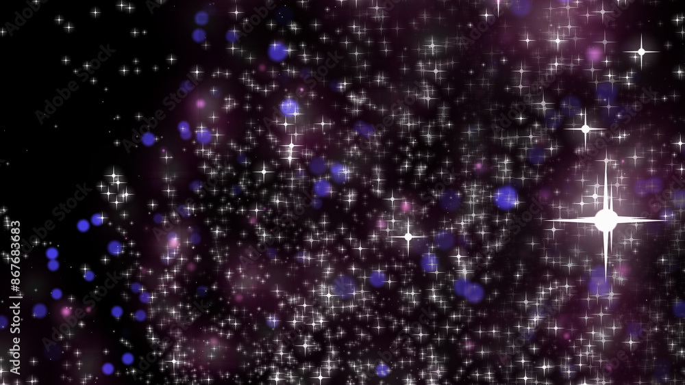 Wall mural : Abstract scattering of flying particles in the form of stars - 3d - 4k seamless background animation -