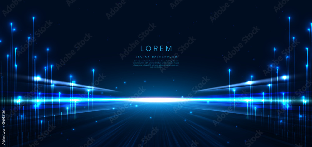 Wall mural : Abstract scene elegant blue light lines on dark background with lighting effect and sparkle -