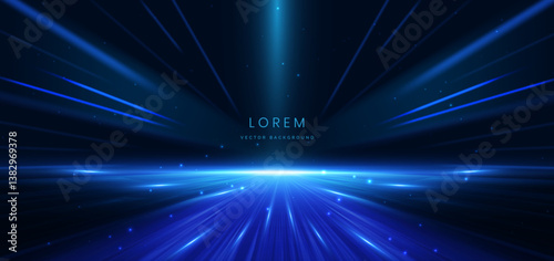 Wall mural : Abstract scene elegant blue light lines on dark background with lighting effect and sparkle -
