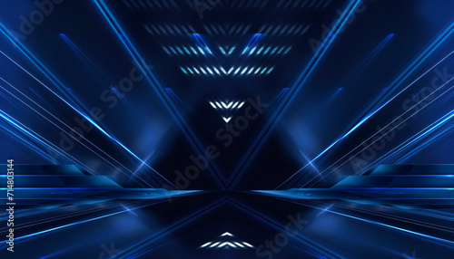Wall mural abstract scene from rays of light with stairs, blue neon, spotlights. - Wall murals Wall mural abstract scene from rays of light with stairs, blue neon, spotlights. - Wall murals