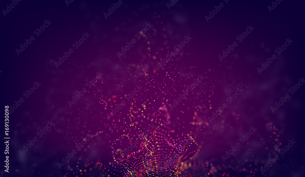 The watermark will not be included on Wall mural.: Abstract science background - futuristic technology 3d vector backdrop with particles glitch flow