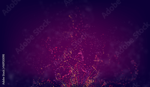 Wall mural : Abstract science background - futuristic technology 3d vector backdrop with particles glitch flow