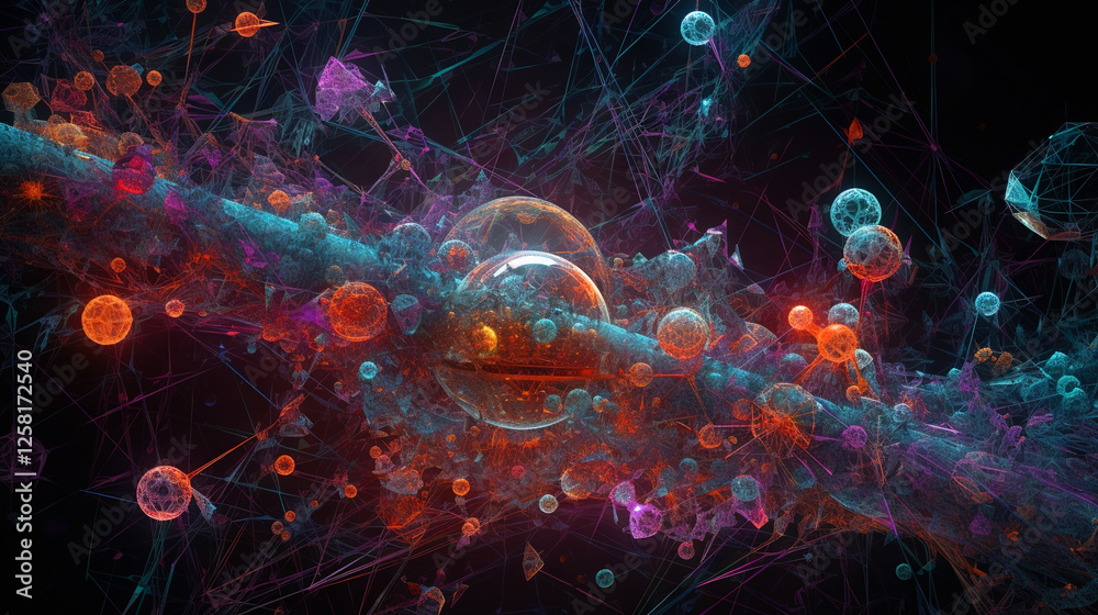 Wall mural abstract scientific concept with connected cells and particles. science microscopic background. - Wall murals Wall mural abstract scientific concept with connected cells and particles. science microscopic background. - Wall murals