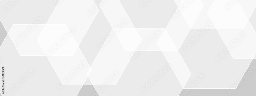 Abstract seamless background with overlapping translucent white hexagons on a light gray to white grWall mural