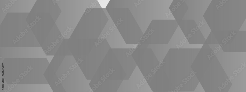 Abstract seamless background with overlapping translucent white hexagons on a light gray to white grWall mural