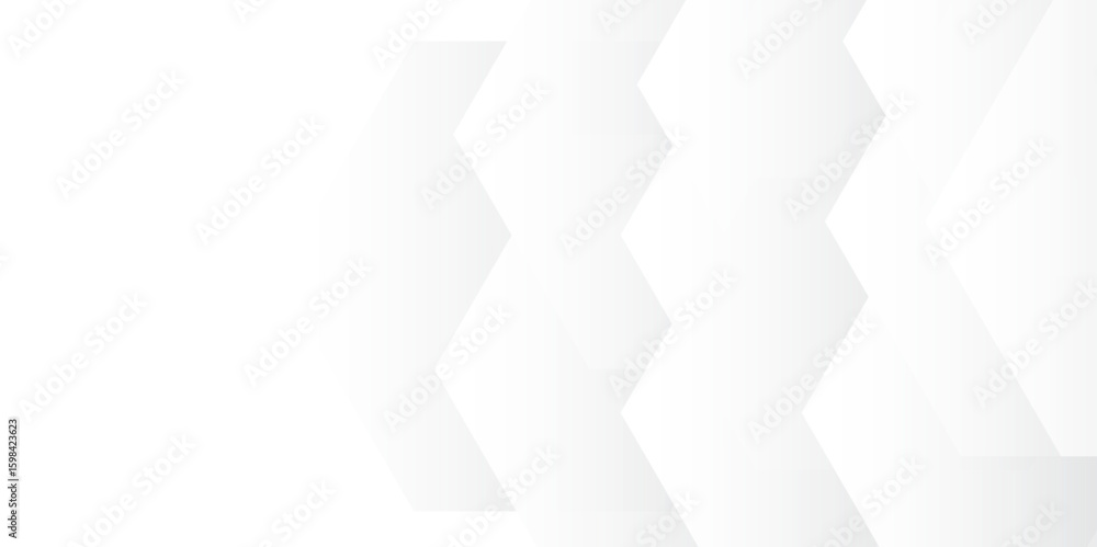 Abstract seamless background with overlapping translucent white hexagons on a light gray to white grWall mural