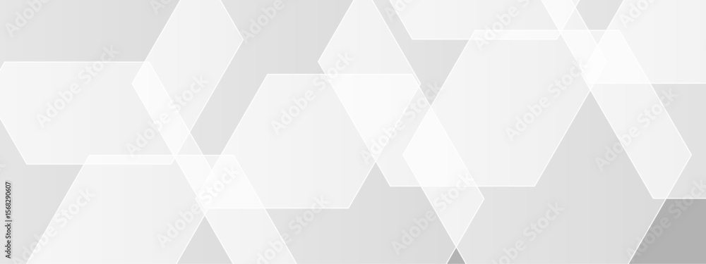 Abstract seamless background with overlapping translucent white hexagons on a light gray to white grWall mural