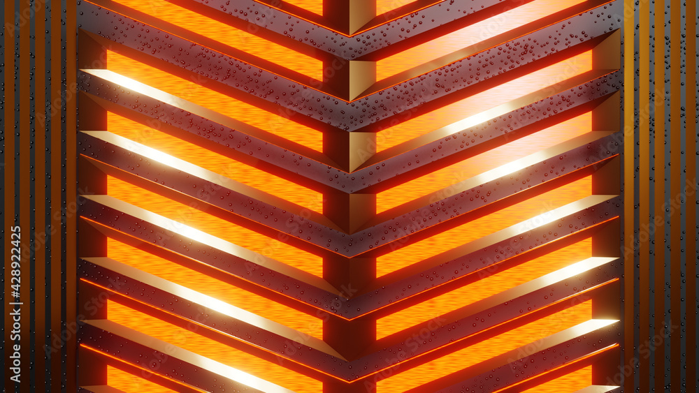 The watermark will not be included on Wall mural.: Abstract seamless loop of 3d renders metallic structure - brown and orange neon abstract futuristic h