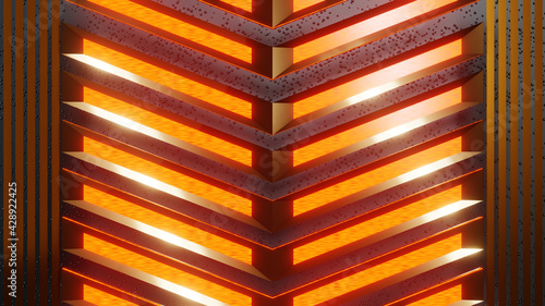 Wall mural abstract seamless loop of 3d renders metallic structure. brown and orange neon abstract futuristic h