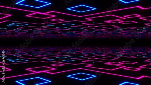 Wall mural abstract seamless loop of 3d renders sci-fi environment. blue and pink neon random shapes abstract f