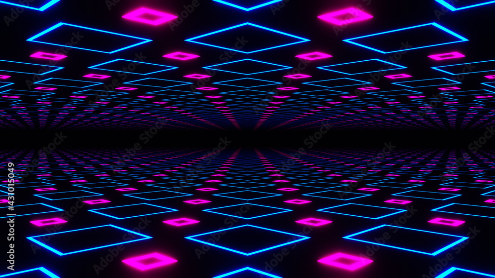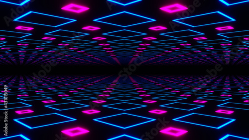 Wall mural abstract seamless loop of 3d renders sci-fi environment. blue and pink neon square abstract futurist