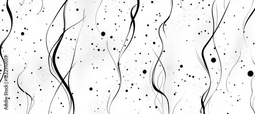 Wall mural abstract seamless pattern, flowing lines and dots on white background, minimalist design
