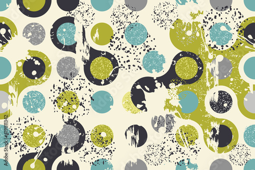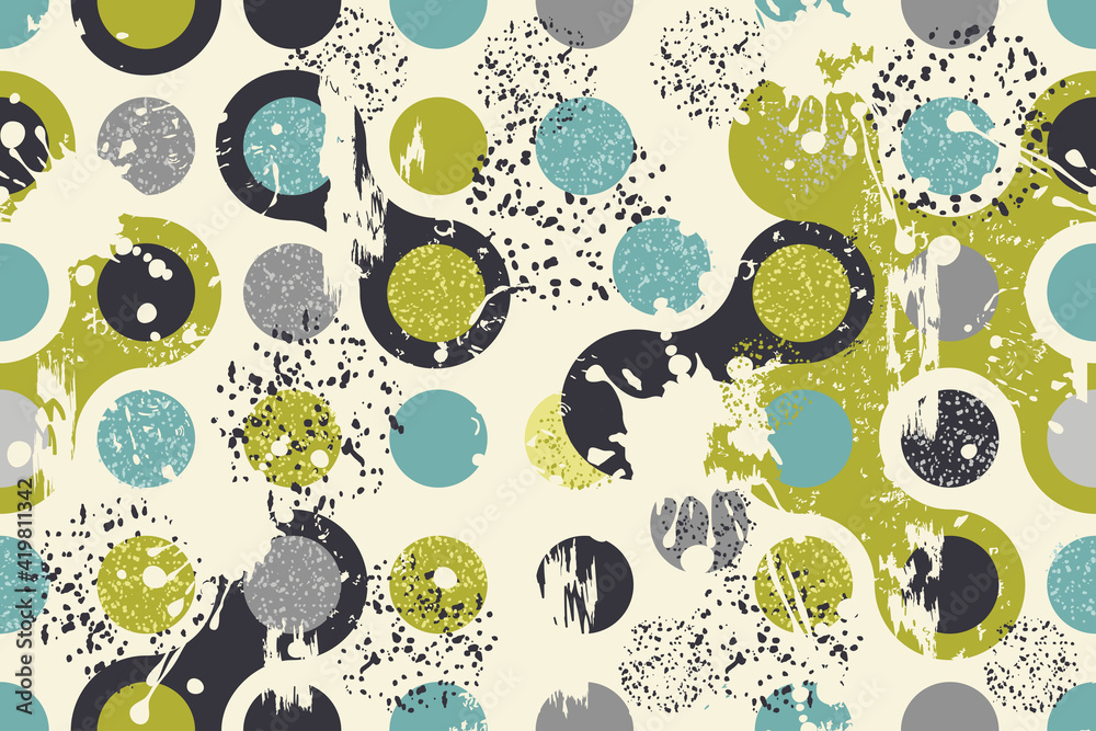 Wall mural abstract seamless polka dots pattern with an effect of attrition in retro colors. retro design. vect