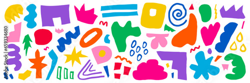 Wall mural abstract set of colorful hand drawn various shapes, curls, forms and doodle objects. trendy vector i