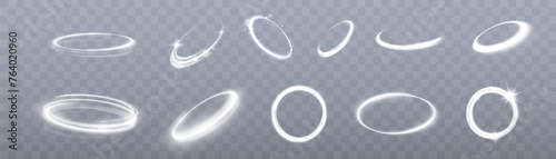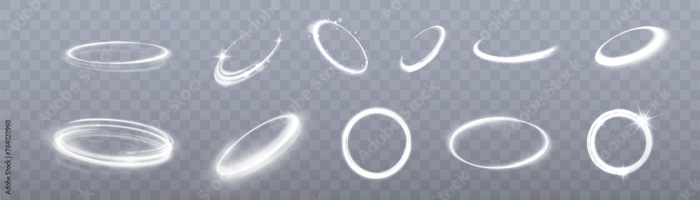 Wall mural abstract set of light circles. bright neon circles. a bright trail of sparkling rays twists in a spi