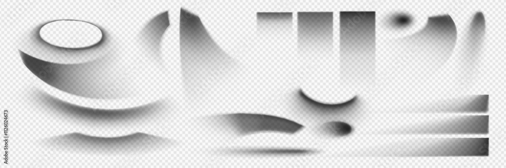 The watermark will not be included on Wall mural.: Abstract shadow effects set isolated on transparent background - vector realistic illustration of gra