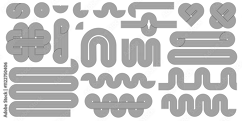 Wall mural abstract shapes with line pattern. vector retro arch and geometric waves on white background. organi