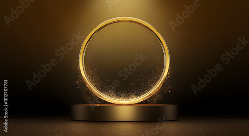 Wall mural : Abstract shiny color gold circle frame and podium design element