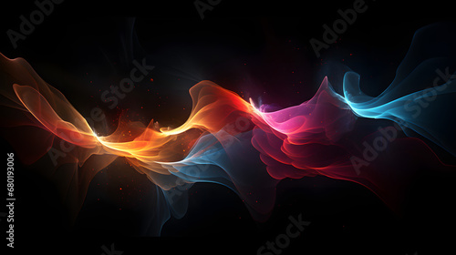 The watermark will not be included on Wall mural.: Abstract shiny color gold wave light effect illustration glow element dark background generativ ai