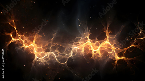 The watermark will not be included on Wall mural.: Abstract shiny color gold wave light effect illustration glow element dark background generativ ai