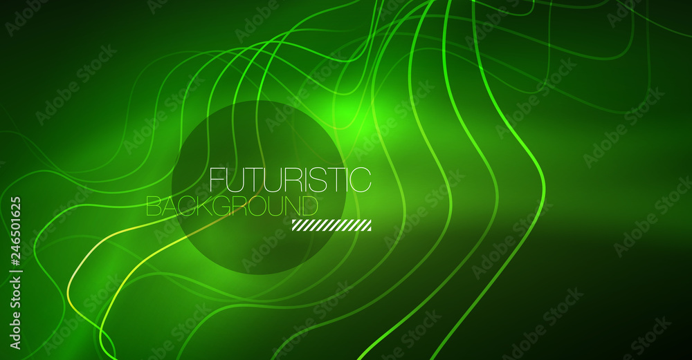 Wall mural : Abstract shiny glowinng color wave design element on dark background - science or technology concept