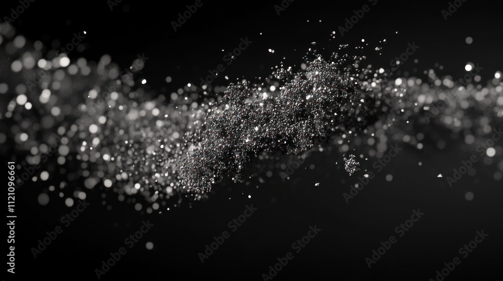 The watermark will not be included on Wall mural.: Abstract silver particles flowing in dark space, bokeh effect -