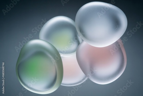 Wall mural : Abstract soft translucent organic shapes with subtle red and green light hues floating against a smo