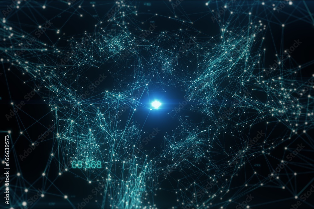 Wall mural abstract space background, geometry surfaces, lines and points. abstract tunnel grid. can be used as